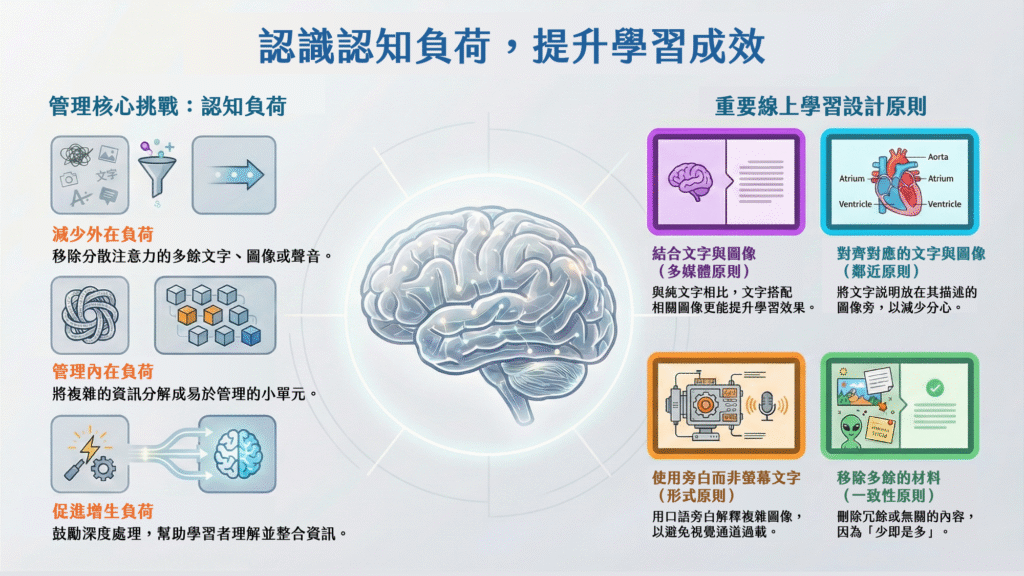 理解人類的認知機制,是好的課程設計的起點。本書以多媒體學習理論(Mayer, 2021)為基礎,強調三種學習者在數位環境中的心理歷程: