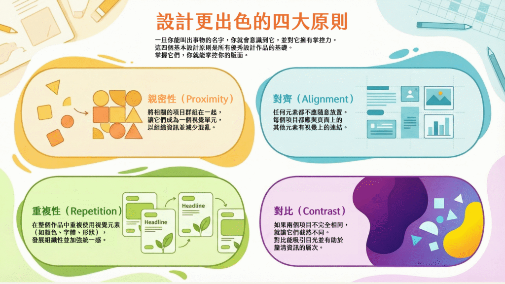 二、四大設計原則總覽:版面不是憑感覺堆出來的
